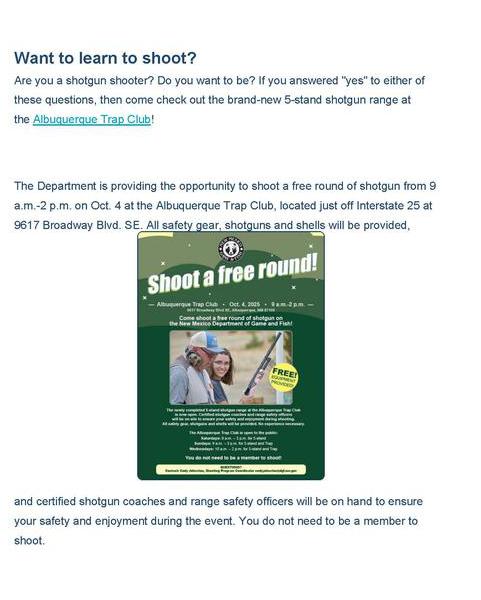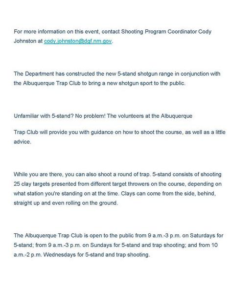 In cooperation with the New Mexico Department of Game and Fish, the Albuquerque Trap Club has declared that the 5-Stand Field is open to all shooters, starting in January 2025.